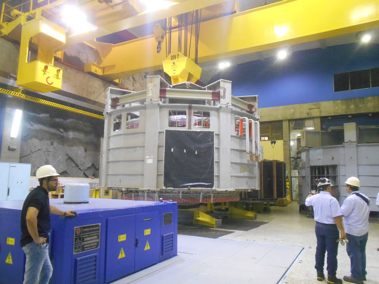 Especificaciones: Montaje de un generador de 125 MVA, tensión nominal igual a 13,8 kV, corriente de 5271 A y un peso total de 345 toneladas con dimensiones igual a 6 metros de diámetro y 9 metros de alto.